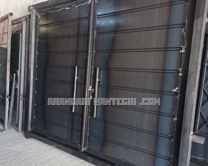 • درب فلزی حیاط دو لنگه (پارکینگی) با پروفیل آهنی